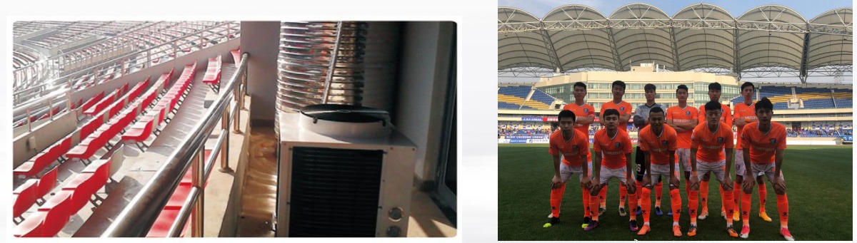 大型场馆:长期征战中甲、中乙的江西联盛足球俱乐部为运动健将们选择乐鱼商用循环式系列空气源热泵热水,可随时为球员提供恒温淋浴用水,出水量大,体感舒适,即开即停。满足比赛、训练过程集中淋浴的大量健康热水需求。