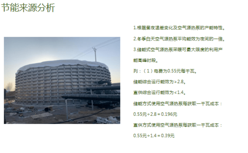 空气源热泵+储能设备完全可以规避机组与末端需求的矛盾。空气能+储能设备,主要突出空气能的能效,在最利于空气源热泵的环境下工作,在最不利于空气源热泵的环境下设备处于停机状态,利用储能的优势高效的把热量输送到末端。